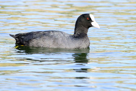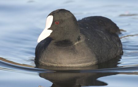 Coot swimming (Fulica atra) Close up Eurasian Coot