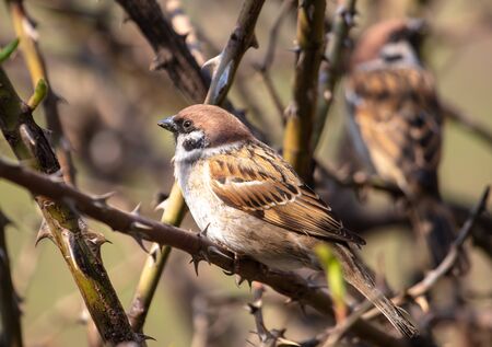 Beautiful brown garden sparrows - telephoto.