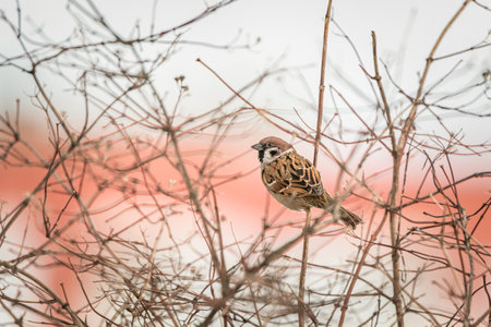 Eurasian Tree Sparrow on dry branches