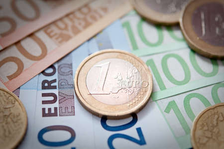 Vintage looking Euro banknote and coin (currency of the European Union)