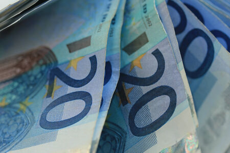 Close up of stacked 20 euro banknotes