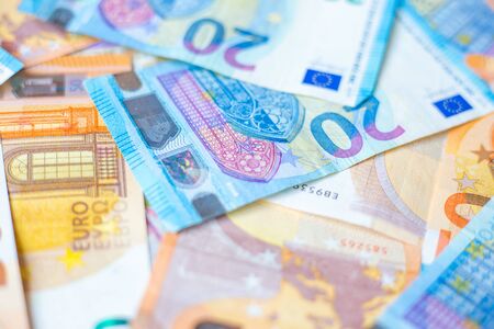 Background of 20 and 50 value Euro money bill close up finance concept