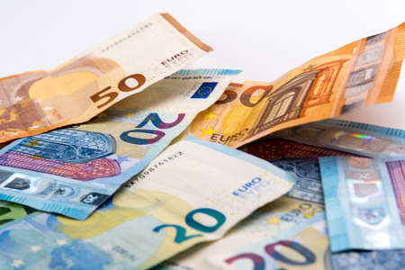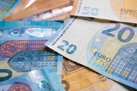 Euro Money 20 50 cash background selective focus. Euro Money Banknotes