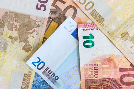 Euro currency macro closeup background with 5, 10, 20 and 50 notes