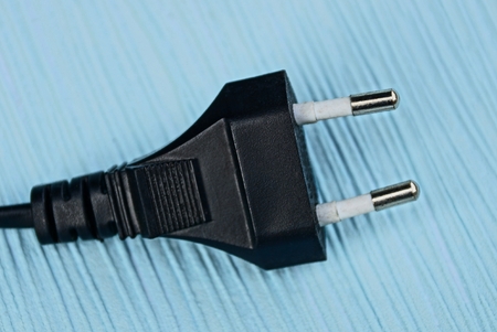 Electric plug closeup on blue background