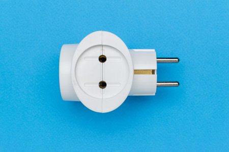 White Electrical Plug Adapter on Vibrant Blue Background for Energy Concept