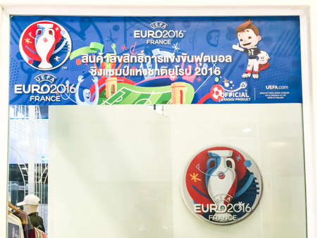 BANGKOK, THAILAND - June 9, 2016: logo of the 2016 UEFA European Championship in France on billboard at Central Shopping Mall.