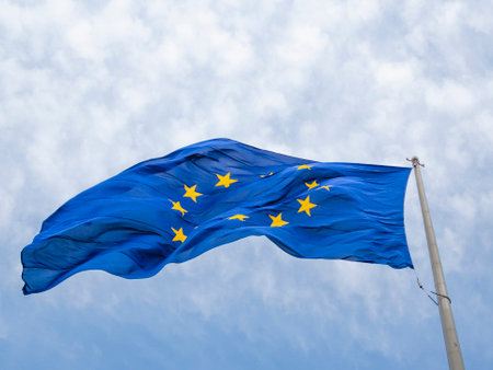 A vibrant European union flag flutters in the breeze, representing European solidarity and identity. A.I.