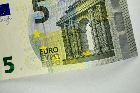 Five euro. European currency. Money as background. Macro.