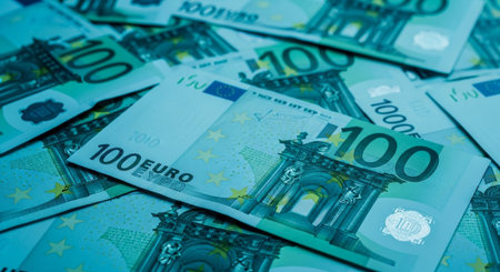 Many different euro bills spread randomly over a flat surface