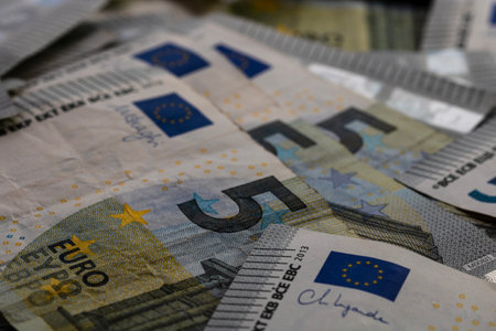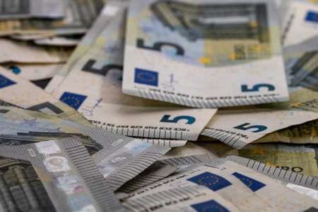 5 EURO banknotes. EUR money background representing savings, income, or investment