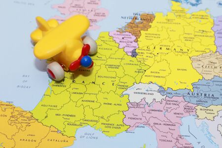 airplane toy travel on Europe map