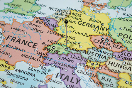 Map of Europe. Selective focus. Travel and Tourism concept.