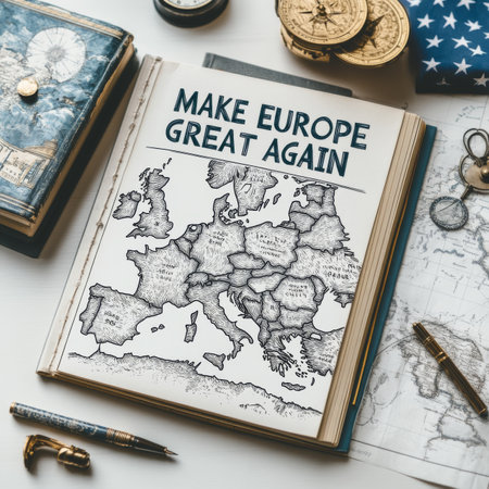 A detailed map of Europe is the focal point, accompanied by a motivational slogan emphasizing unity.