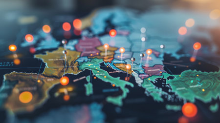 Visual representation of interconnected Europe through digital map emphasizing global connectivity. Concept Interactive Map, Global Connectivity, Europe, Digital Representation