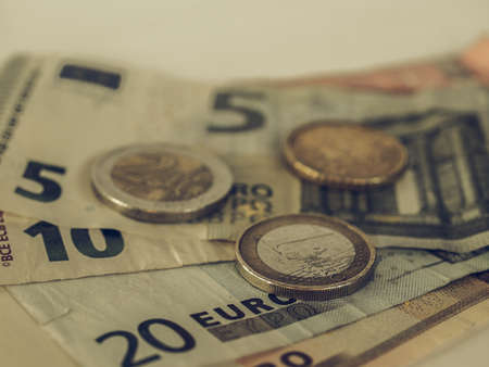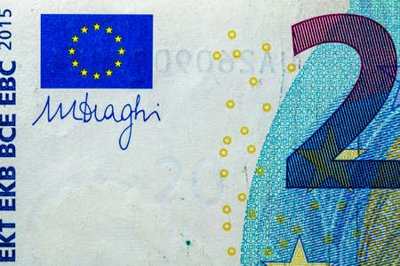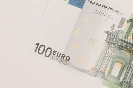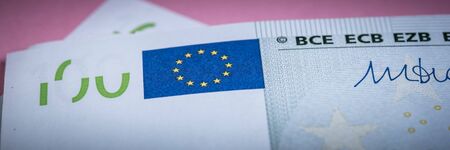 Selective focus on detail of EURO banknotes. Close up macro detail of EURO banknotes. World money concept, inflation and economy concept