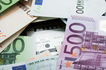 Close-up Of A Euro Banknotes Over Electricity Meter