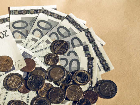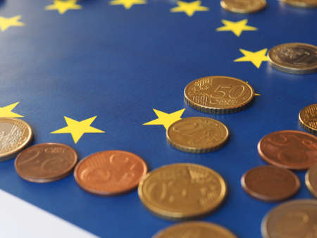 Euro banknotes with coins. Euope Finance system. Inflation of Euro Currency. Commerce in EU