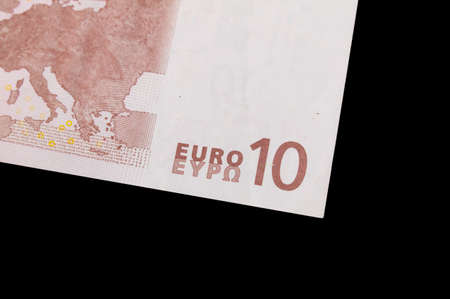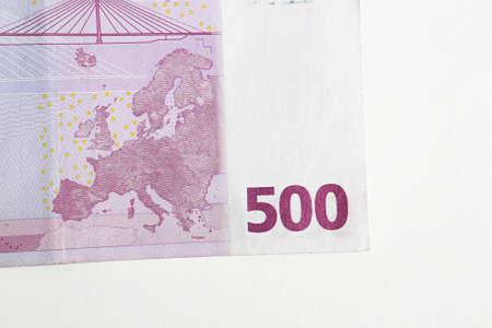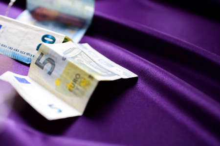 Selective focus on detail of euro banknotes. Close up macro detail of money banknotes, 5 euro isolated. World money concept, inflation and economy concept