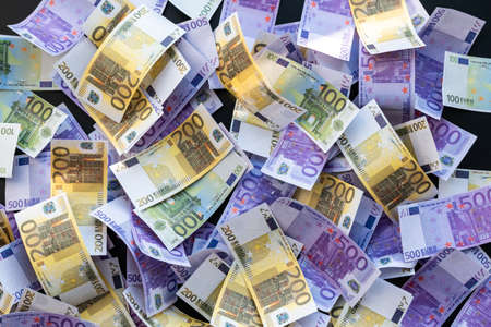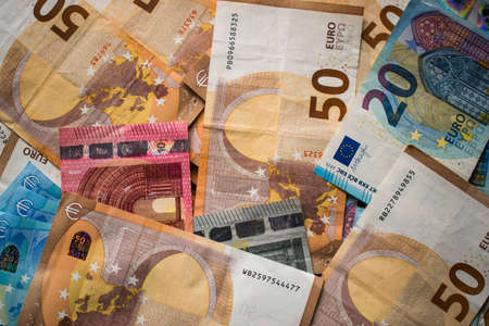 Euro money, Euro cash background. Banknotes of the european union. Euro cash. Many Euro banknotes of different values.