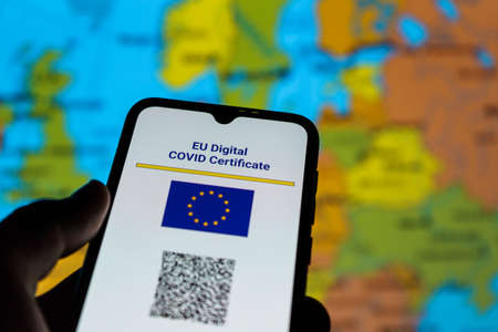 European Union digital COVID-19 certificate. Vaccination pass which allow people travel around Europe freely
