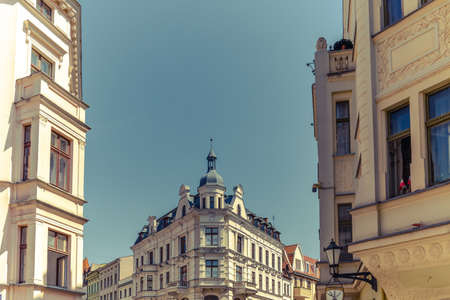 Torun, Poland - August 2020 : Renovated historic tenement houses and buildings in the historic Old Town