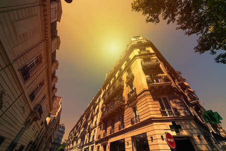 Luxury buildings under a clear sky at sunset. Paris, France