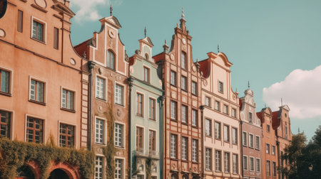 Charming pastel facades of traditional European buildings create a vibrant street scene in the town square, showcasing unique architectural details and historical significance.