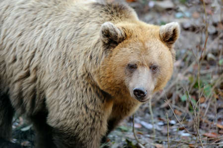 Close up big brown bear in autumn forest