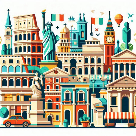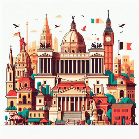 Cityscape of Rome, Italy. Colorful vector illustration in flat style