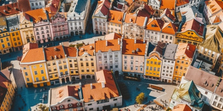 Generative AI : View to the colorful roofs and houses with garden of Vysegrad in Prague Czech Republic at autumn aerial image travel seasonal background