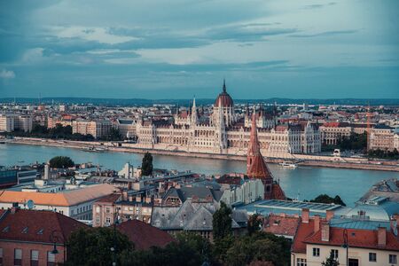 Aerial view Colorful Budapest dramatic sky Fantastic