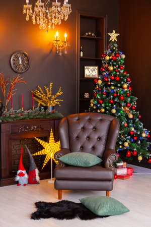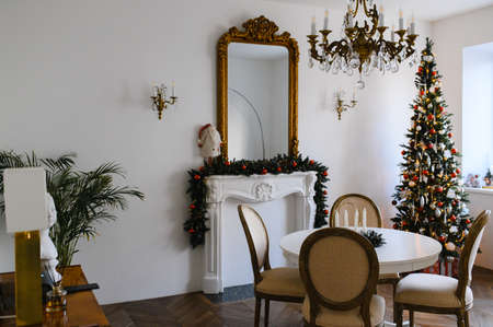 Feast of Christmas. Beautifully decorated house with a Christmas tree.