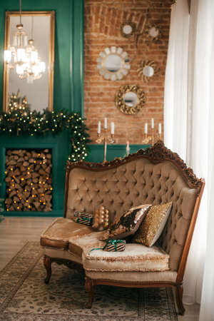 New Year's decoration of a gorgeous living room in a luxury classic style