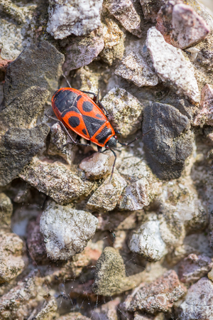 Pyrrhocoris apterus, is a common insect of the family Pyrrhocoridae. The firebug,