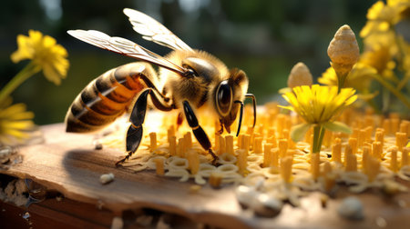 Bee on honeycomb. AI generated content