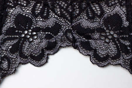 black lace fabric, sexy retro negligee material. Vintage lingerie ornament. background texture, pattern.