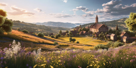 A peaceful village in the countryside, a poetic dwelling in the green fields
