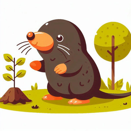 A tiny mole peeks out from a hidden tunnel beneath vibrant leaves, blending seamlessly with the thriving greenery of a flourishing garden.
