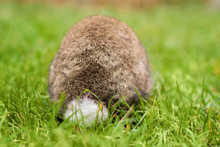 A closeup of a common vole on the ground with a blurry background. Common Vole, Microtus arvalis, in its natural habitat