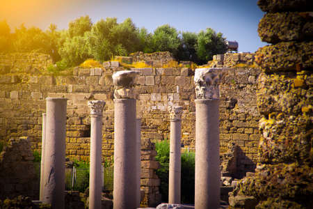 Ancient ruins of colonnaded portico in the Sanctuary of Apollo Hylates near Limassol, Cyprus.