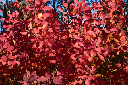 Autumn red color of leaves of cotinus coggygria. Paints of fall.