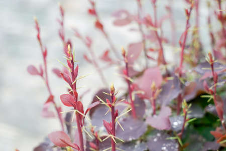 Thunberg barberry or Japanese barberry is an ornamental shrub with purple-carmine foliage.