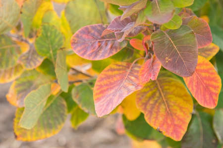 Beautiful autumn background with colorful foliage. Cotinus.