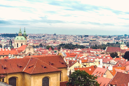 Prague skyline rooftop view with historical buildings in Czech Republic.