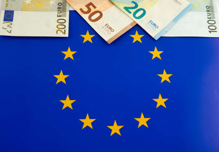 Euro (EUR) banknotes, currency of European Union (EU) with copy space
