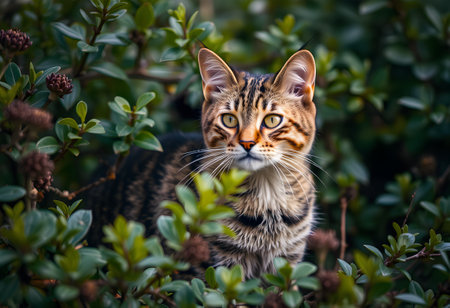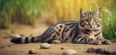 Feline beauty in nature, staring with alertness generated by artificial intelligence