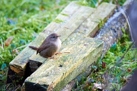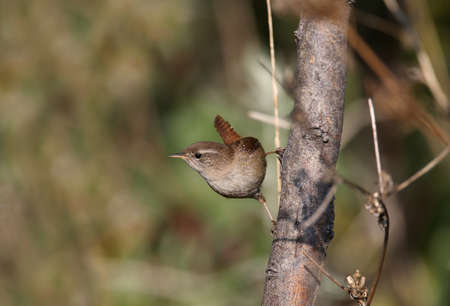 Eurasian Wren Troglodytes troglodytes. Wild bird in a natural habitat.