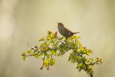 Tiny Wren (Troglodytes troglodytes) in an Hawthorn tree