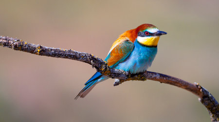 European bee-eater, Merops apiaster, beautiful colored bird perched on a twig,